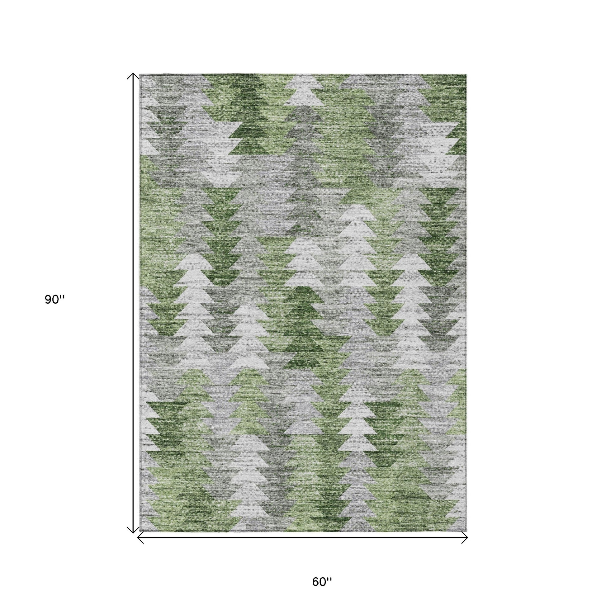 5' X 8' Green And Fern Green Geometric Washable Indoor Outdoor Area Rug
