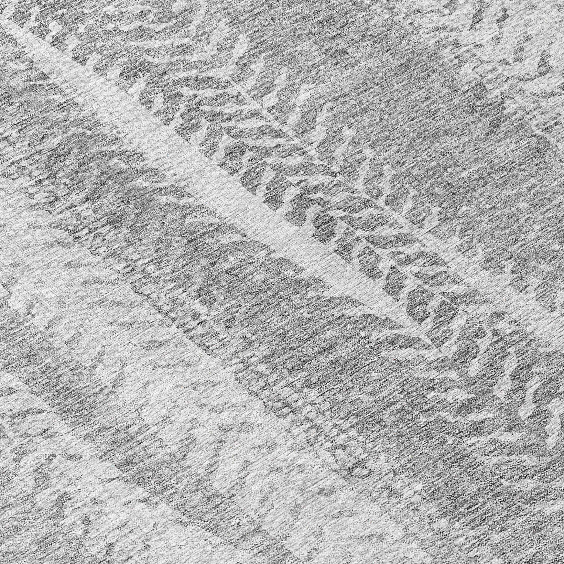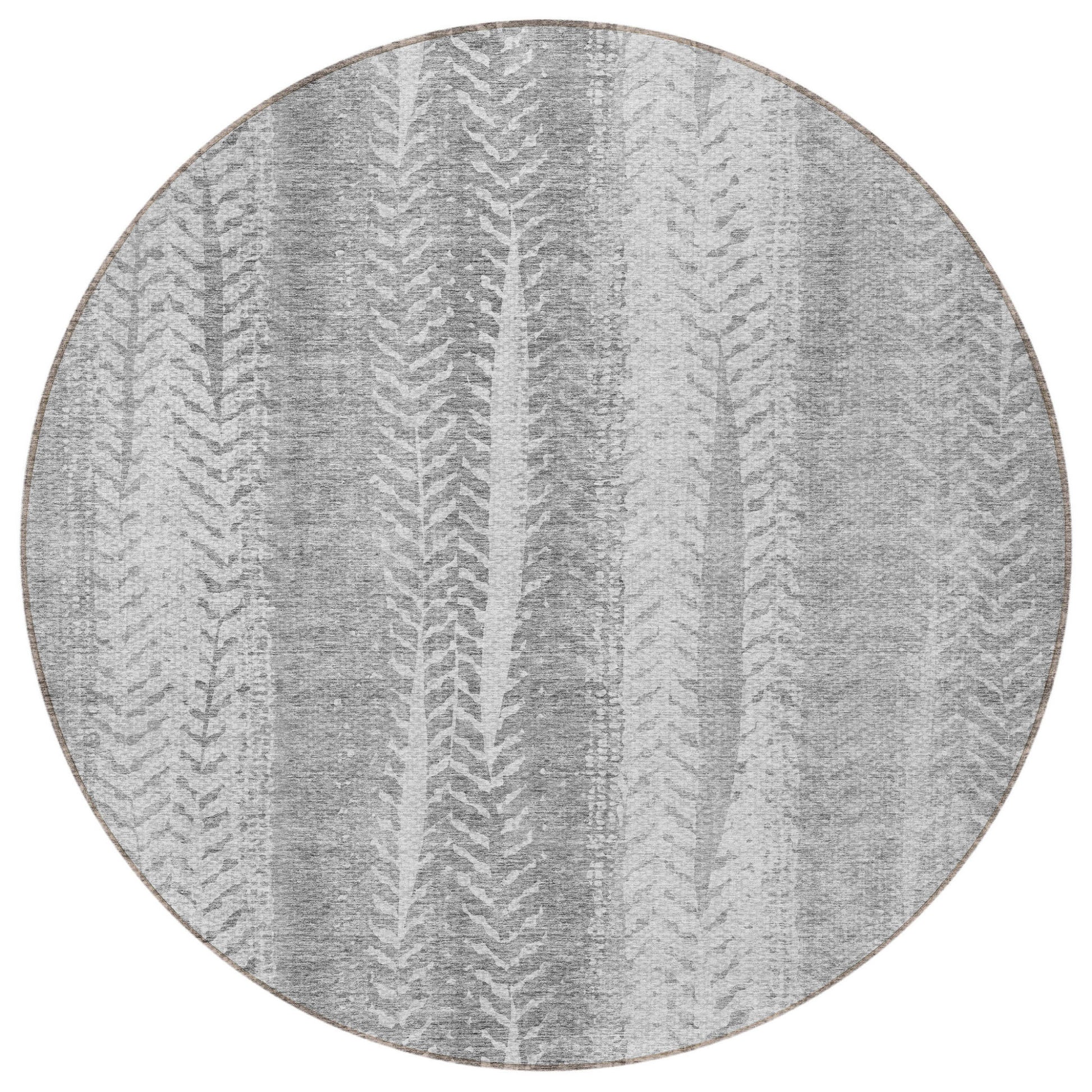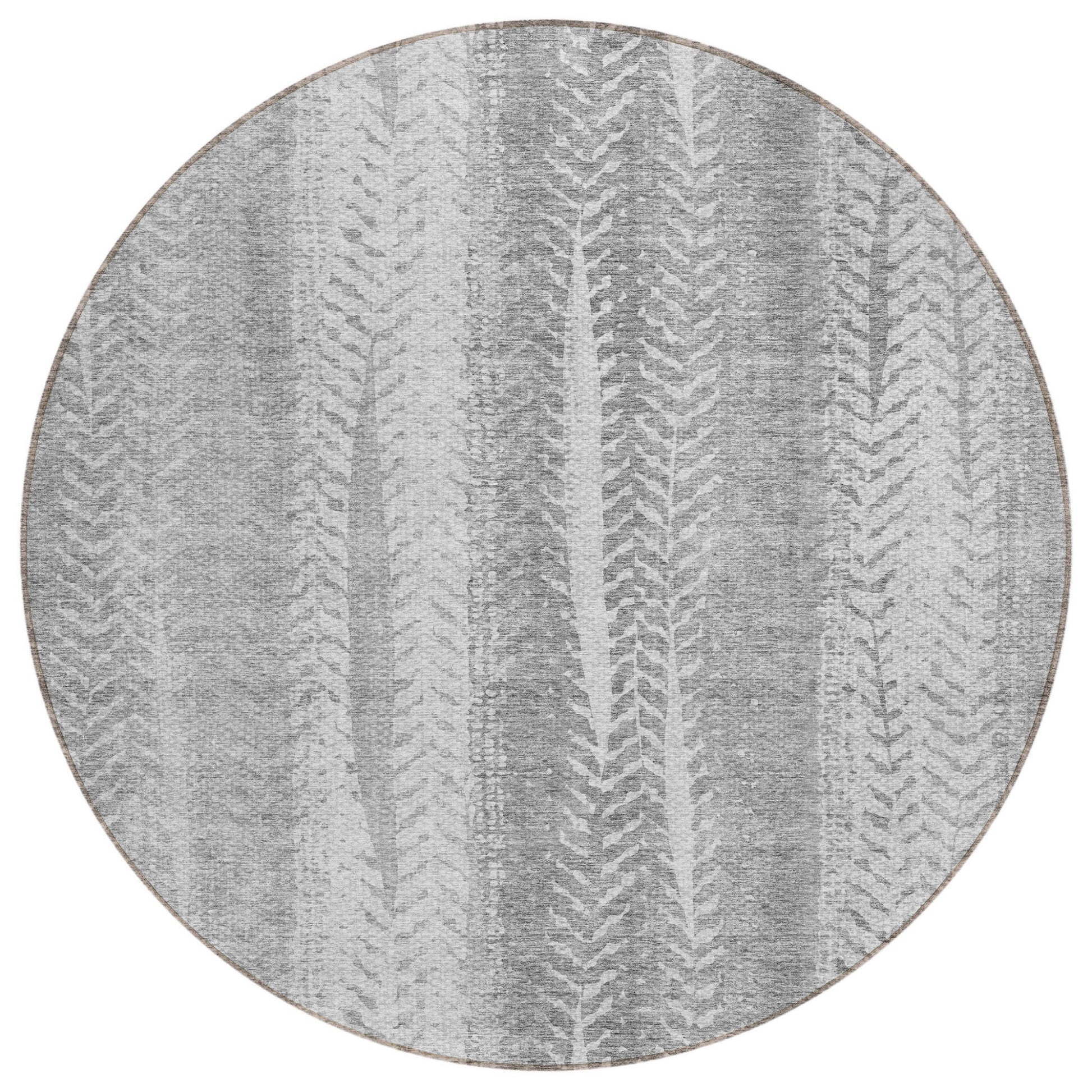 8' Silver Gray And Graphite Round Botanical Leaves Washable Indoor Outdoor Area Rug