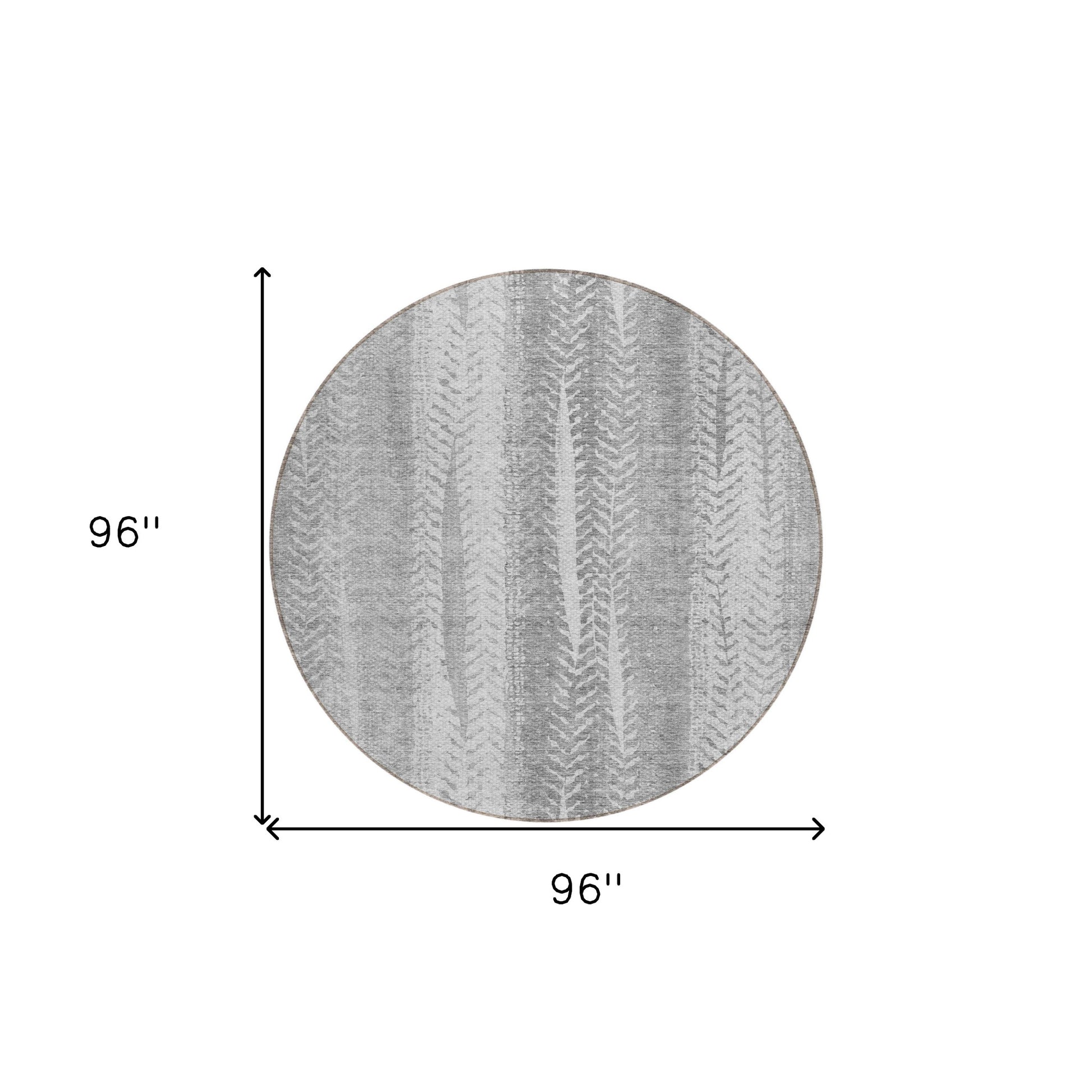Add some artistry to your room with this 8-foot silver gray and graphite round botanical leaves washable indoor outdoor area rug. This geometric round shaped rug features a botanical leaves pattern in silver, gray, and graphite that combines a good looking print with a unique and updated shape. The mix of shape, color, and design gives this rug refreshing visual interest. Ideal for outdoor spaces or high traffic areas with kids and pets, this rug is made from heavy duty polyester that is stain resistant to help repel water, dirt, and stains. Versatile in use, durable, and easy to maintain, this rug is an ideal solution to add a decorative and inviting touch to your indoor or outdoor space. 96-inch h x 96-inch w x 0.19-inch d.