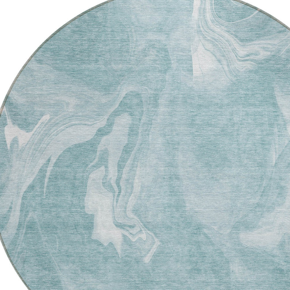 8' Teal Blue And Aqua Round Abstract Washable Indoor Outdoor Area Rug